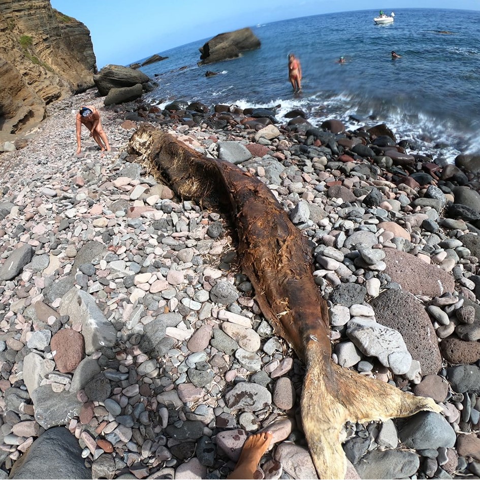 Nelle isole Eolie il passaggio di questi cetacei è poco frequente anche se diversi gruppi di globicefali sono avvistabili in aree distanti dalla costa caratterizzate da ripidi strapiombi. Non sono rari i ritrovamenti di carcasse lungo le spiagge Eoliane come quella che si può osservare in queste immagini, recuperata con i nostri volontari sotto Capo Faro a Salina.