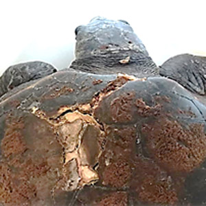 Come l’omonima contrada dell’isola di Salina, Pollara è stata così chiamata, perché ritrovata proprio in quella zona, incastonata fra le rocce del fondale dell’isola a pochi metri sotto la superficie. Individuata da un gruppo di turisti generosi, è stata subito recapitita presso il nostro Centro per cure immediate. Sul suo carapace spiccava una grossa e profonda spaccatura, causata da una collisione con una barca ad alta velocità. Il colpo deve essere stato così forte da stordire Pollara tanto da farle perdere l’orientamento. Preoccupate per la vicinanza della ferita alla colonna vertebrale e alla testa, abbiamo ritenuto opportuno inviarla alla Stazione Zoologica Anton Dohrn per ulteriori analisi, dove è residente tuttora.